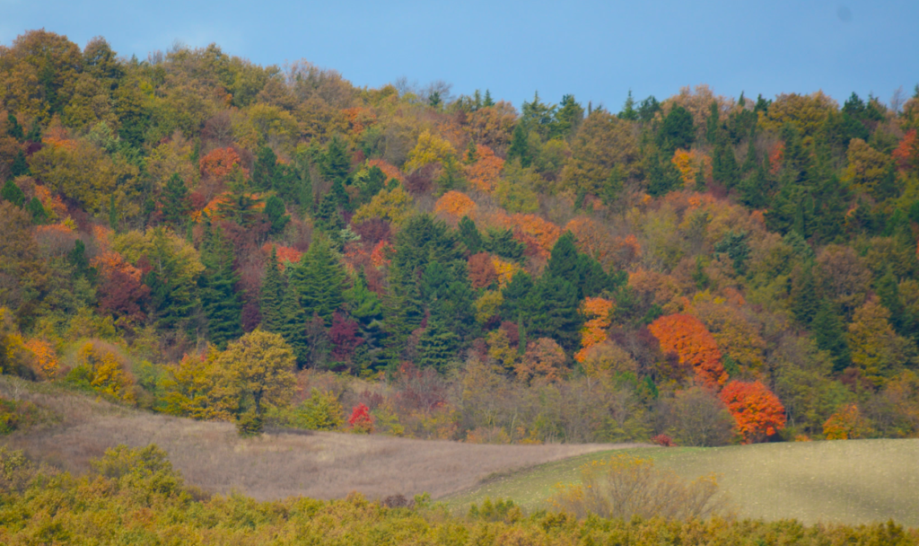 Pertanto alle vaste distese gialle dei campi di grano, impreziosite per la presenza di covoni di paglia, si alternano formazioni boschive di colore verde scuro; il tutto è percorso da una vasta rete idrica superficiale di carattere torrentizio stagionale.